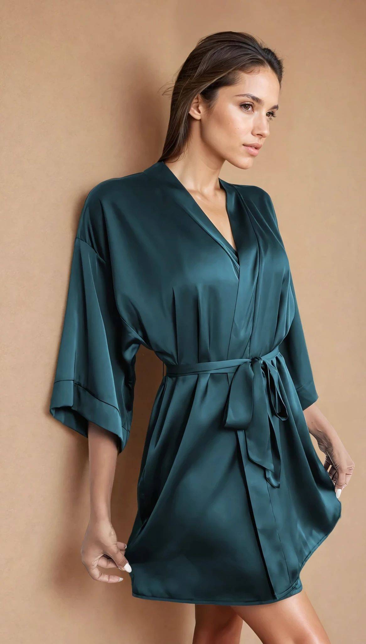 Salida de cama en satin en color turquesa.